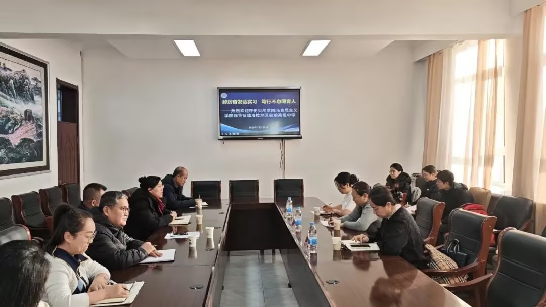 为强化实践教学基地共建,贯通大中小学思政教育协同育人链条,12月10日,qy球友会体育党委副书记刘琳、副院长明兰、学生教育实践指导教师刘鹤深入海拉尔区实验高级中学开展教育实习交流暨实践教学基地深化合作活动,海拉尔区实验高级中学党总支书记白海波、校长胡洪涛、副校长张然和政治学科教师共同参加了此次活动。
